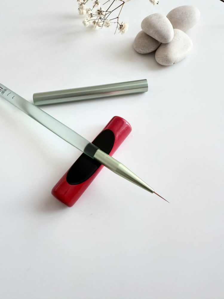 Кисть с тонким упругим ворсом, которая используется для френча, создания тонких линий, узоров и прорисовки мелких деталей. Идеальна для лунного маникюра, геометрических дизайнов.