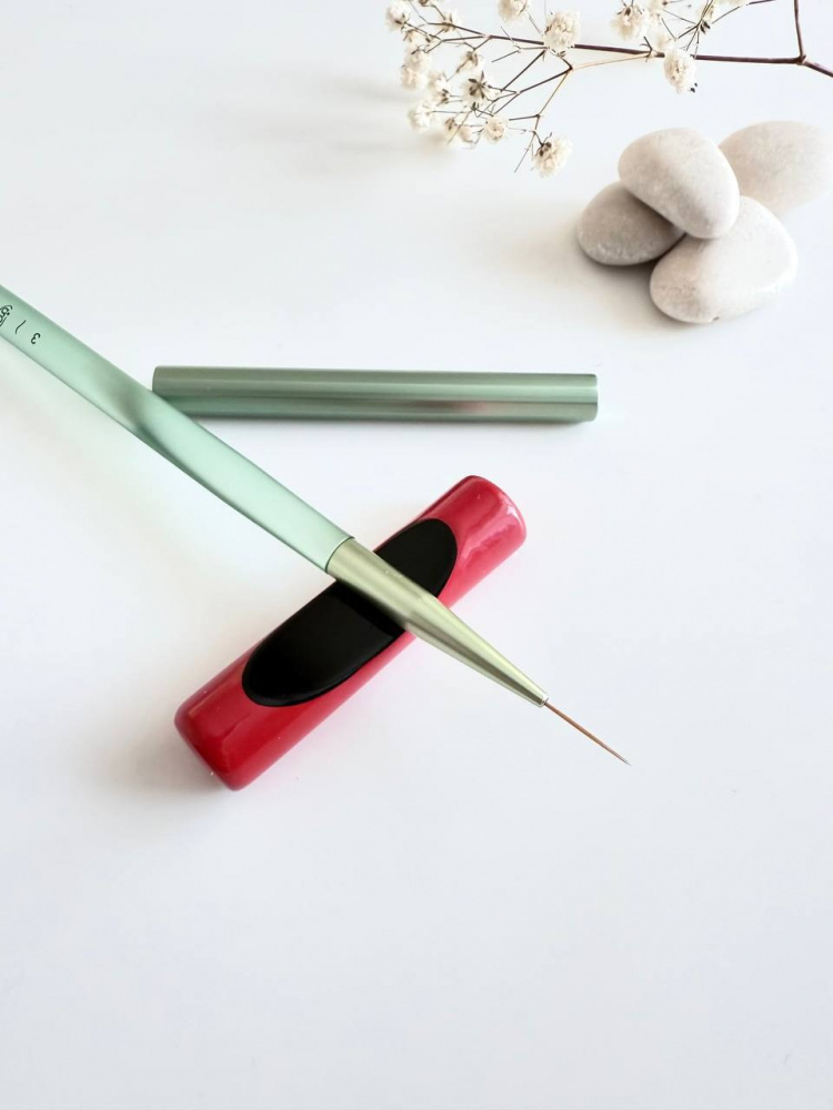 Кисть с тонким упругим ворсом, которая используется для френча, создания тонких линий, узоров и прорисовки мелких деталей. Идеальна для лунного маникюра, геометрических дизайнов.