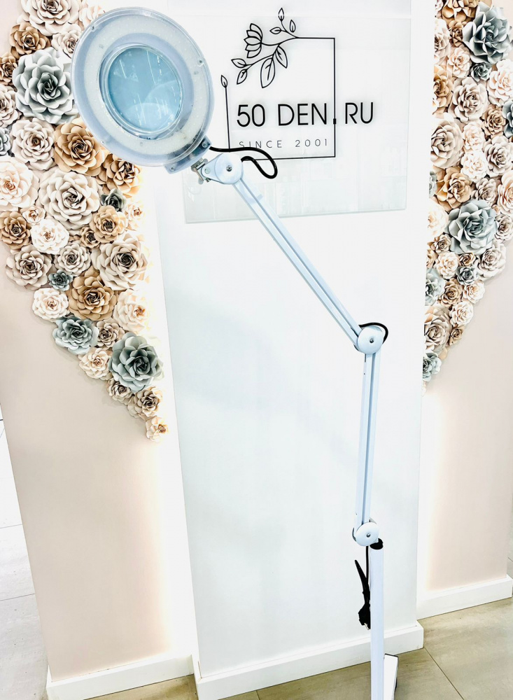 Лампа лупа 5Х светодиодная напольная для педикюра. Пятикратное увеличение.