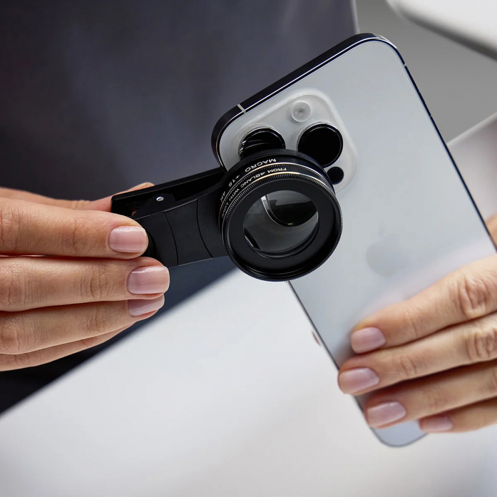 Компактная макролинза 4BLANC подходит для большинства смартфонов (iPhone, Samsung, Xiaomi Android, iPad планшетов). Одним движением закрепите линзу к телефону с помощью зажима. Основание клипсы с резиновыми вставками для защиты вашего телефона от царапин и надёжной фиксации линзы.