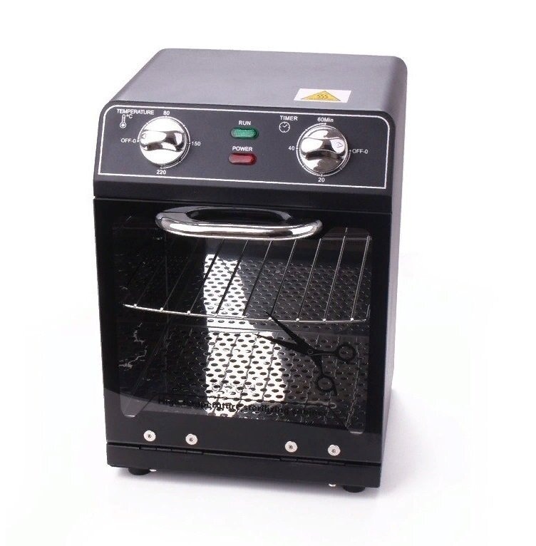Стерилизация осуществляется методом термической обработки с помощью нагрева воздуха до заданной температуры. Управление прибором осуществляется через интуитивно понятные регуляторы: