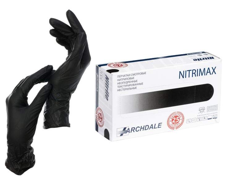 Перчатки нитриловые NitriMAX 100 шт, XL, черные. Плотные черные перчатки. Из чистого нитрила.