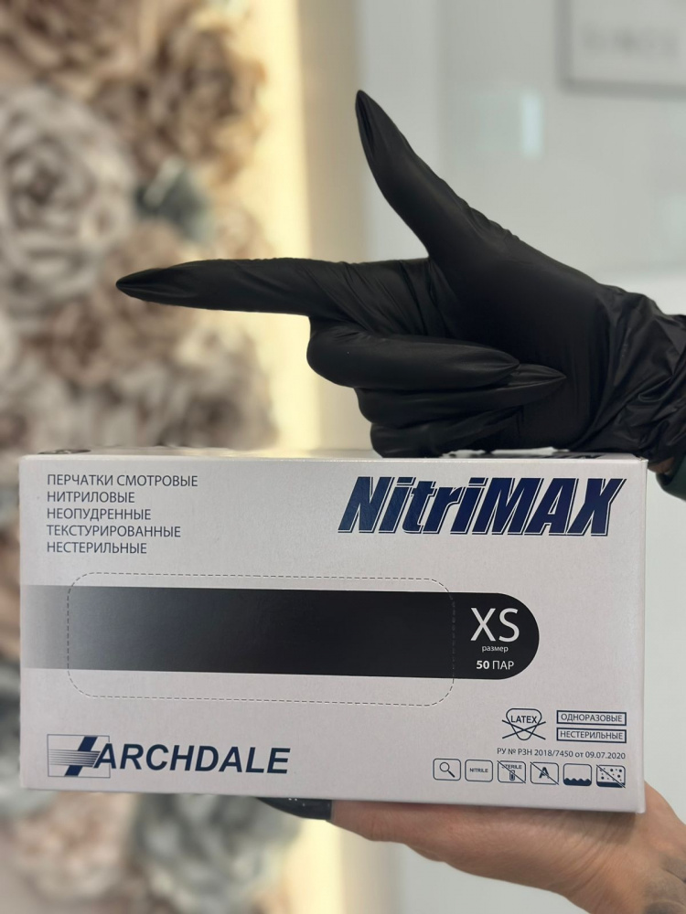 NitriMAX, Перчатки XS нитриловые 100 шт, черные
