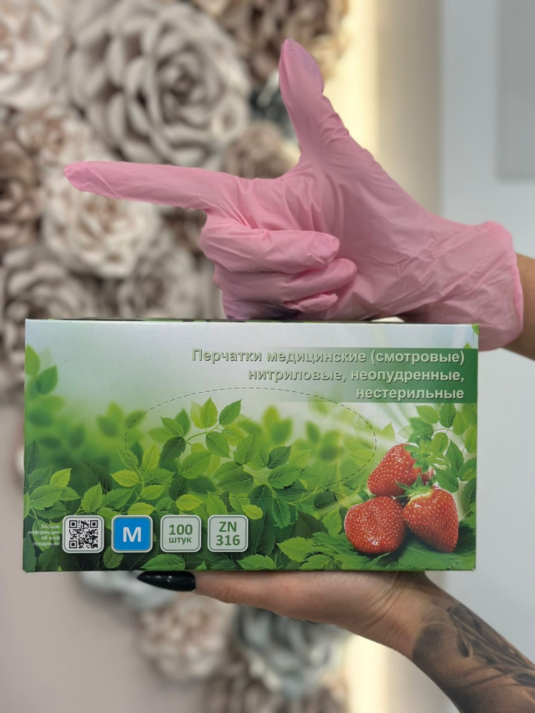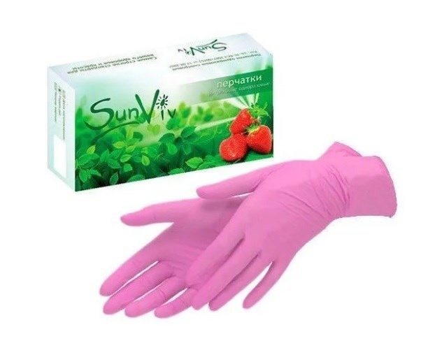 Перчатки M нитриловые SunViv 100 шт, розовые