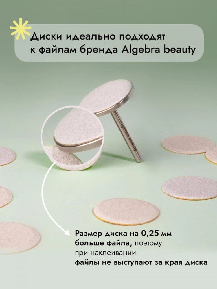 Перед использованием обработайте диск согласно правилам СанПиН, обезжирьте рабочую поверхность. Закрепите на диске сменный файл от Algebra Beauty. После использования снимите и утилизируйте файл.