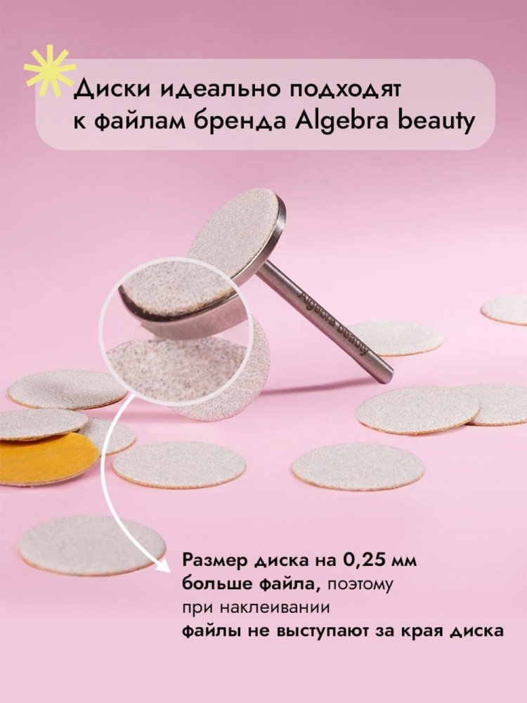 Перед использованием обработайте диск согласно правилам СанПиН, обезжирьте рабочую поверхность. Закрепите на диске сменный файл от Algebra Beauty. После использования снимите и утилизируйте файл.