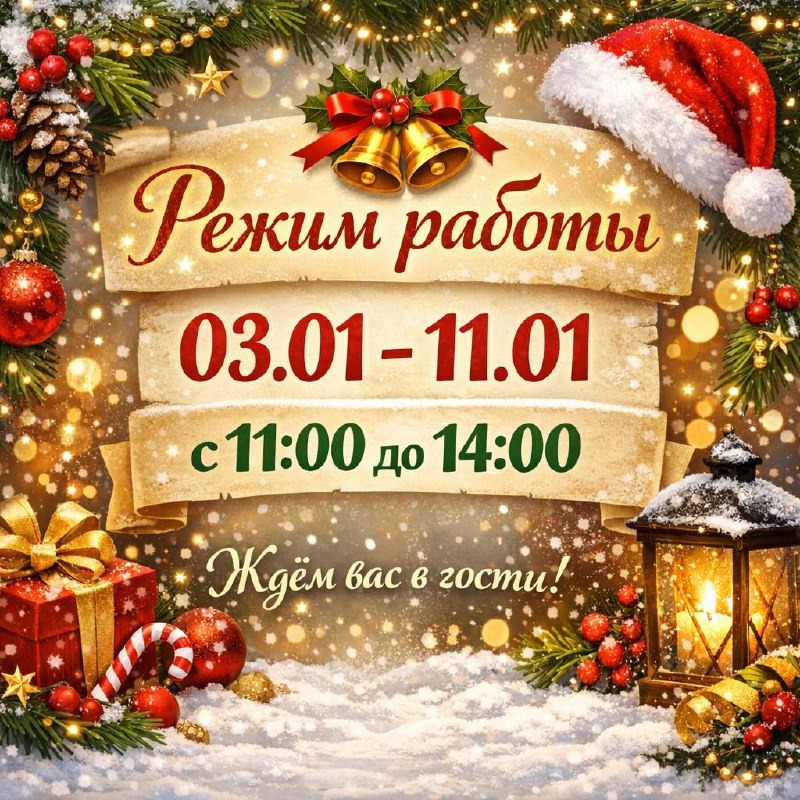 Режим работы в новогодние праздники с 03 по 11 января 2026 года с 11:00 до 14:00